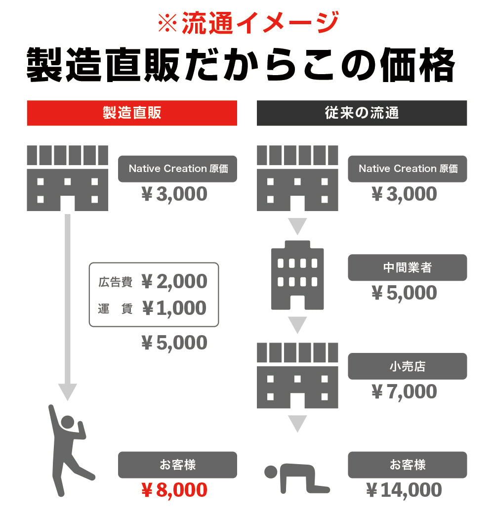 This allows us to offer our products at prices that are more affordable than those offered at general retail stores through traditional distribution channels, while still maintaining the same quality.